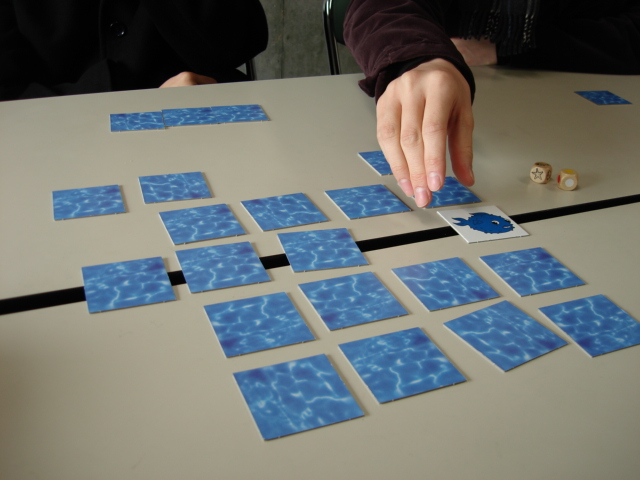 取った獲物は自分の前に伏せられて置いておきます。もし、探している獲物が相手の場にあるのなら、横取りが可能なわけです(白のヒトデの場合は不可)。これがこのゲームのキモです。